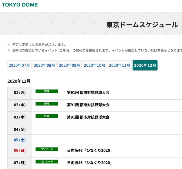 東京ドームスケジュールに12/6、12/7に「ひなくり2020」の表記が!今後どうなる!?